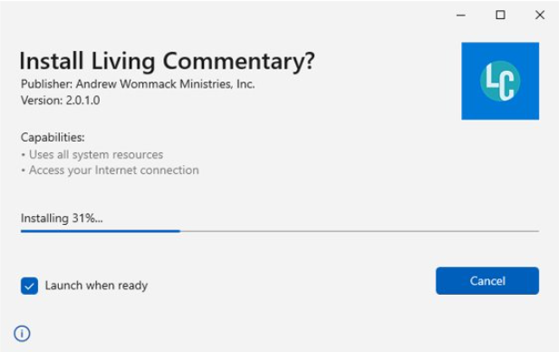 Upon launching Living Commentary, a window will appear asking “Do you want to download and install new version?”.