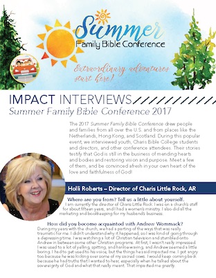 The 2017 Summer Family Bible Conference drew people and families from all over the U.S. and from places like the Netherlands, Hong Kong, and Scotland. During this popular event, we interviewed youth, Charis Bible College students and directors, and other conference attendees.