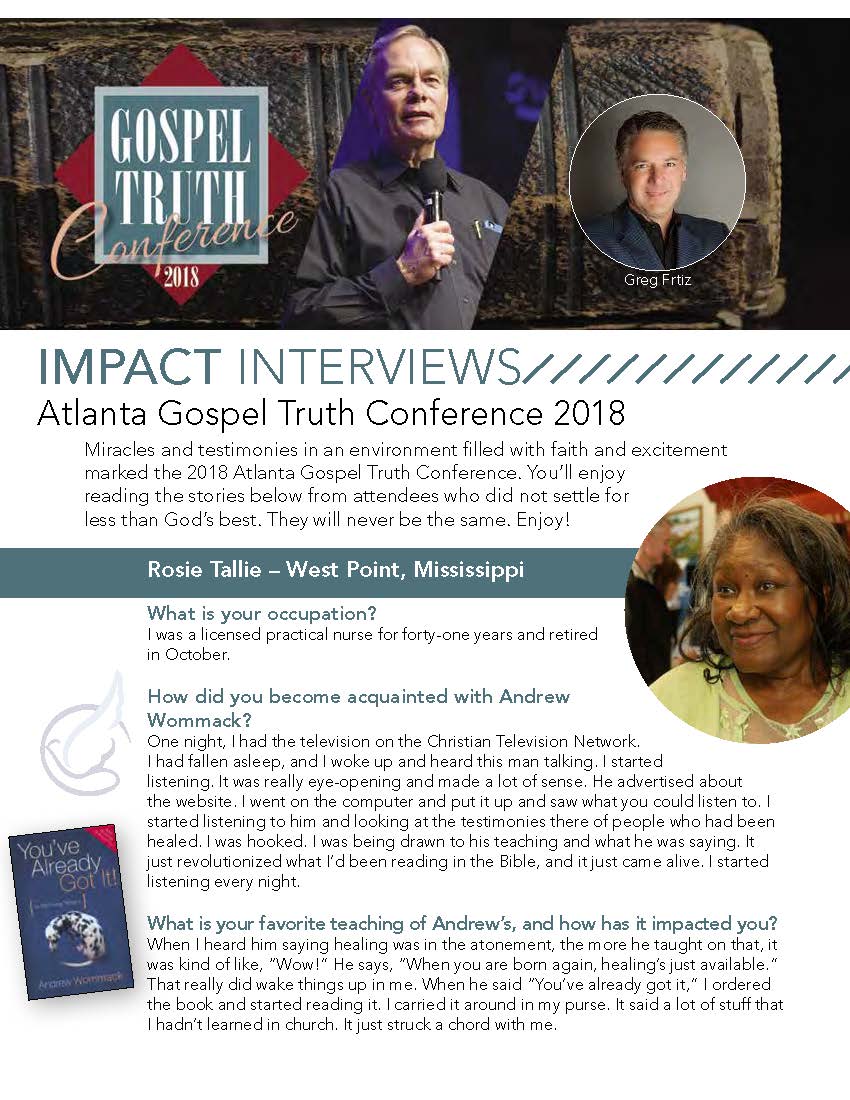 Miracles and testimonies in an environment filled with faith and excitement marked the 2018 Atlanta Gospel Truth Conference. You’ll enjoy reading the stories below from attendees who did not settle for less than God’s best. They will never be the same. Enjoy!