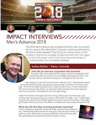The 2018 Men's Advance was a powerful time for men, young and old, to come to Woodland Park, Colorado, and be transformed by the Word. Guest speakers Tony Dungy and James Brown joined Andrew in sharing the message of grace and faith with men eager to see God's power in their lives. Enjoy these real stories of transformation from the Men's Advance!