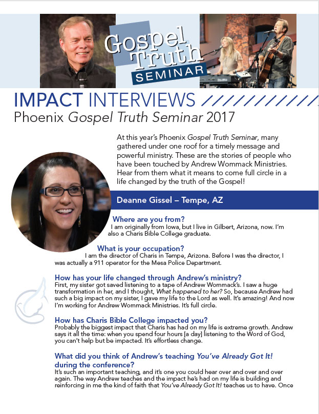 At this year’s Phoenix Gospel Truth Seminar, many gathered under one roof for a timely message and powerful ministry. These are the stories of people who have been touched by Andrew Wommack Ministries. Hear from them what it means to come full circle in a life changed by the truth of the Gospel!