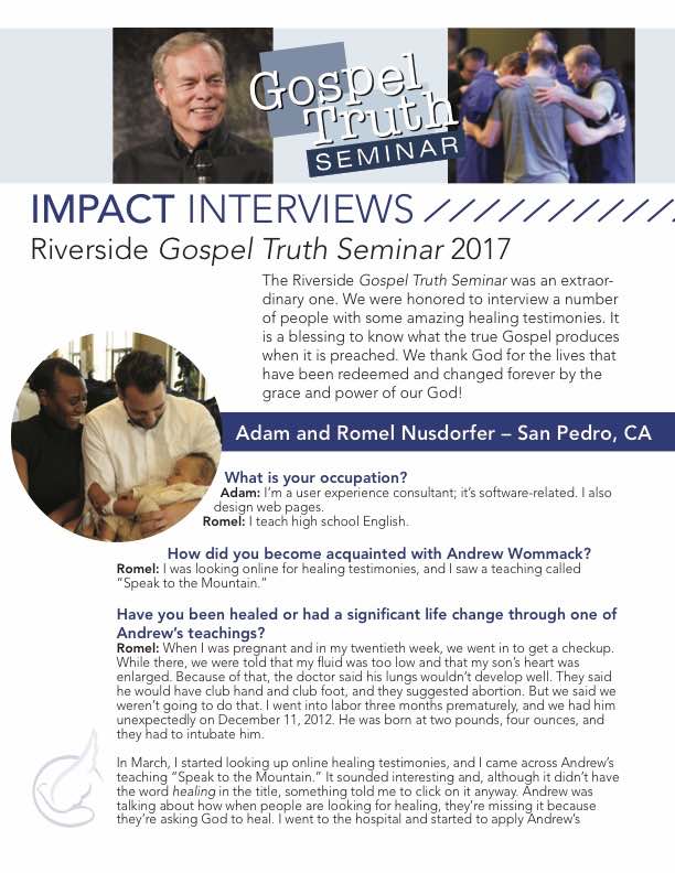 The Riverside Gospel Truth Seminar was an extraordinary one. We were honored to interview a number of people with some amazing healing testimonies. It is a blessing to know what the true Gospel produces when it is preached. We thank God for the lives that have been redeemed and changed forever by the grace and power of our God!