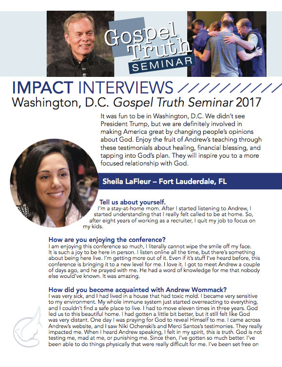 It was fun to be in Washington, D.C. We didn’t see President Trump, but we are definitely involved in making America great by changing people’s opinions about God. Enjoy the fruit of Andrew’s teaching through these testimonials about healing, financial blessing, and tapping into God’s plan. They will inspire you to a more focused relationship with God.