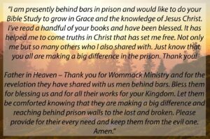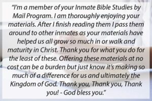 Inmates also write us letters every day asking doctrinal questions, sharing prayer requests, giving their testimony, and more. Although not primarily a correspondence program, the Prison Ministry team lovingly responds to each letter with encouragement, answers, and the Word of God.